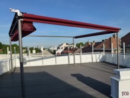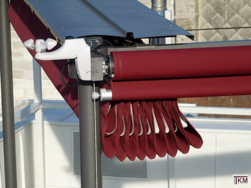 Zusätzliche Optionen: Motorisierung der Raffbeschattung, Sonnen-Windwächter, Regen-Schutzdach für das Markisentuch, zusätzliche Senkrechtmarkisen für seitliche Beschattung, abnehmbare Marmor-Füße für Befestigung
